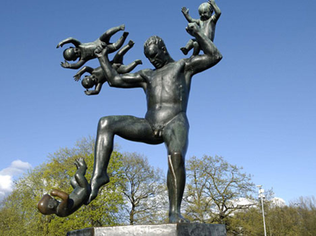 · नर्वेको ओस्लोस्थित विजल्याण्ड पार्कमा रहेको यो मूर्तिमा धेरै बच्चाहरुले एउटा वयस्क पुरुषमाथि हमला गरेछि उक्त पुरुष रिसाए एक बच्चालाई कुल्चिएको र अरुलाई पाखुराले हानेको देख्न सकिन्छ । बच्चा र वयस्क पुरुष सबै नांगै छन् ।